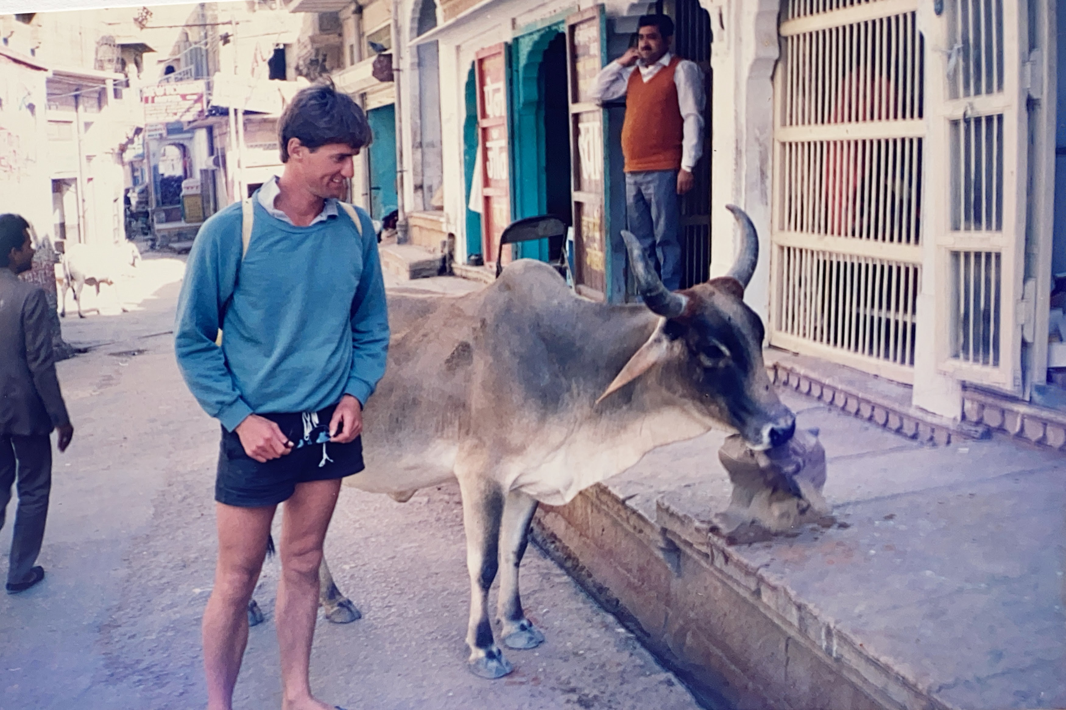 We flew to India in March 1989 – into Bombay( now Mumbai) We arrived early in the morning around 1 am – so a group of us tried to find accommodation in the middle of Bombay which was a disastrous start to our Indian adventure. The streets were, as you would expect empty, apart from seemingly hundreds of homeless sleeping on the pavements. A few Indian touters were keen to find us some digs. But at that time of the morning it was a hopeless. We went down little alleyways, up stairwells and into some very questionable areas of the city. It wasn’t until 6 am in the morning that we actually found a place to stay. After an exhausting night , a sleep and a shower we then ventured out – how the streets had transformed into a lively bustling market place.