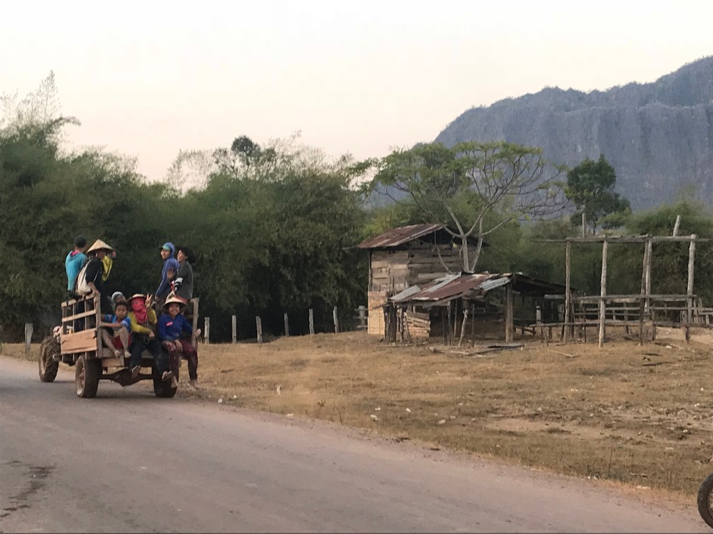 We left Luang Prabang and hit the road by bus down to Vang Vieng. Local buses are great and very cheap.