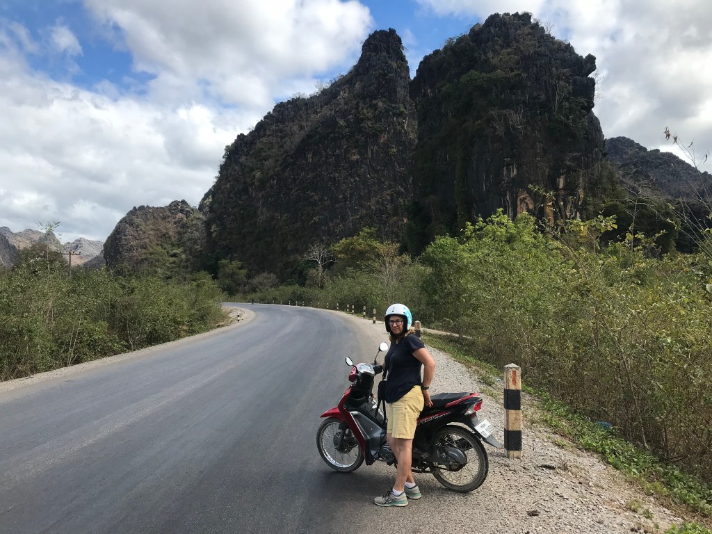The roads are empty and rock climbing is a big thing in Laos